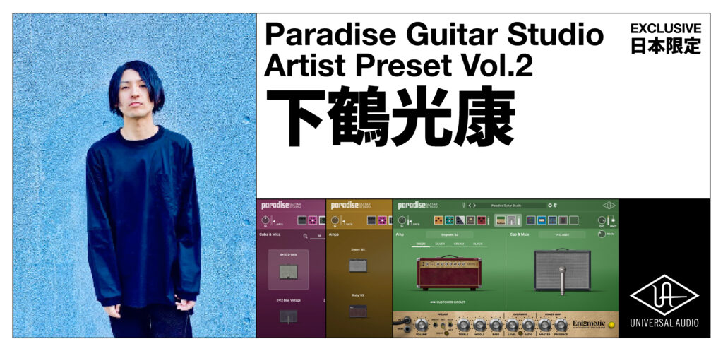 Paradise Guitar Studioの国内購入特典となるアーティストプリセット第二弾として下鶴光康氏によるプリセット・ダウンロードが本日より開始!