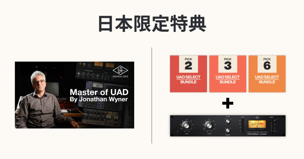 すべてのUADソフトウェアセール品を対象に、期間内に購入されたお客様へ、世界的エンジニアJonathan Wyner氏によるMaster of UADコンテンツ Vol.1〜6の視聴URLをプレゼントします。