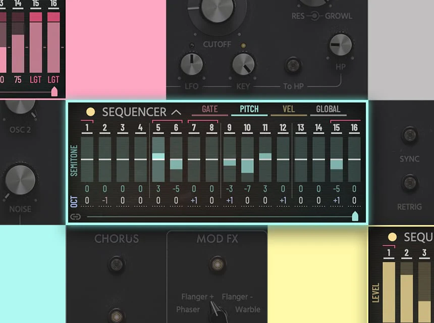 荒々しいアナログ・モデリング・フィルター、太いオシレーター、そしてローファイなエフェクトによって、存在感のあるサウンドを生み出します。