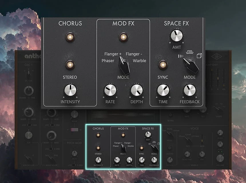 Anthemに搭載されたコーラス、フランジャー、スプリングリバーブ、テープエコーは、実際のアナログ機材を元にモデリングされており、ヴィンテージの温かみとローファイなキャラクターを持ちます。より奥行きや広がりを加えたいときでも、別のプラグインを立ち上げる必要はありません。Anthemひとつで、求める「雰囲気」をすぐに作り出せます。