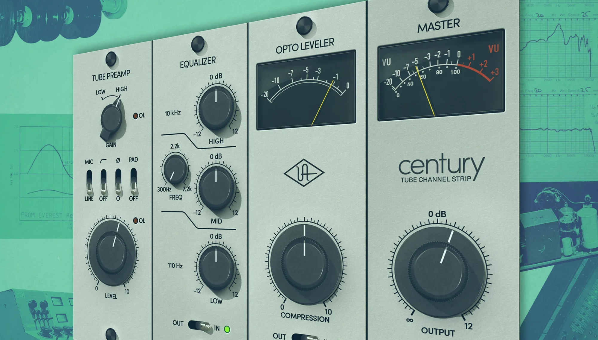 Century Tube Channel Stripは、UAの画期的なUnisonテクノロジーにより、ヴィンテージチューブプリアンプの重要なインピーダンス、ゲインステージングの「スイートスポット」、回路動作のすべてを提供し、アナログとデジタルの境界線をぼかすことができます。その秘密は、Century Tube Channel StripプラグインからApolloのデジタルコントロールされたマイクプリアンプへのUnisonの双方向コントロールとコミュニケーションにあります。