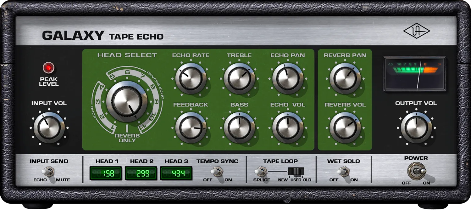 Galaxy Tape Echoプラグインは、象徴的で伝説的な70年代のユニットを徹底的にエミュレーションし、その歪み、音楽のワウ/フラッター、SF的なピッチシフト、リアルタイムの微調整に至るまで、インスピレーションを与えるハードウェアの物理的挙動を精巧にキャプチャーしています。