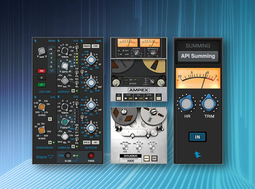 新搭載のAIアシスタントが音声による録音操作(※)やトラック設定までをアシスト。さらにAPI、Studer、Ampexのコンソールとサミングに加え、受賞歴のある28ものUADプラグイン(単体プラグインライセンスとして付属)により、お気に入りのレコードのようなアナログ・フィーリングを実現します。
