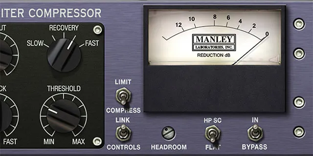 ソース素材を加工するにあたり、極めてスムースなゲインリダクション、温かみのあるハーモニックをコンテンツに注入しながらも、コンプレッションによる聴感上のアーティファクトより開放されるManley Vari Mu Limiter Compressorプラグインを用いることにより、驚くべき透明性を持つ可変ゲインコンプレッサーをスタジオに追加。