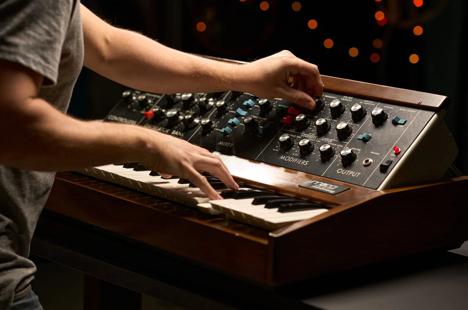 間違いなくもっとも象徴的なシンセサイザーであるMoog Minimoog Model Dは、モダンミュージックのサウンドを変えました。KraftwerkからParliament-Funkadelic、Yes、Dr. Dreに愛用されたMinimoogの太くて音楽的な表現力に富んだアナログシンセ・サウンドは他のシンセが判断されるための基準となりました。
