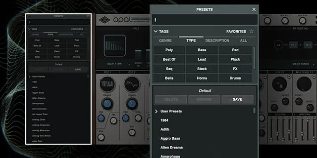 UAの元に集結したシンセ信奉者達が愛情込めて作成したOpalの豪華なプリセットを呼び出し、まさに正統なサウンドを手に入れましょう。