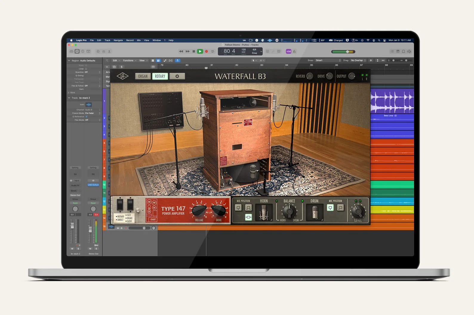 Waterfall B3 OrganはHammond B3オルガンとLeslie 147ロータリースピーカーキャビネット*の組み合わせを徹底的にエミュレート、数十年にわたる伝説のアルバムで聴かれた豊かな音色と3次元的なサウンドをあなたの音楽にもたらしてくれるでしょう。